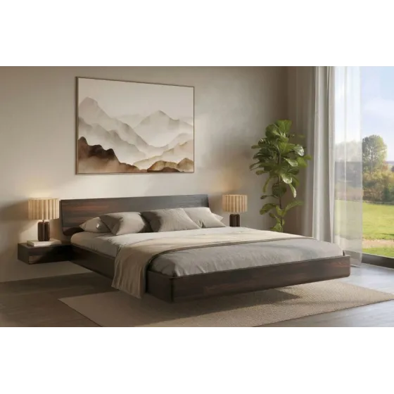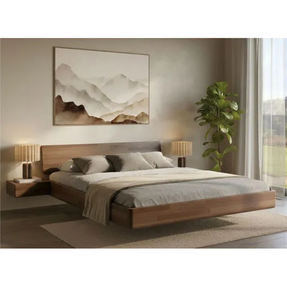 Gamme : MoodType : Lit design flottant en boisCaractéristiques : Marque : EWOOD, Bois Hêtre massif, finition naturel, wenge...