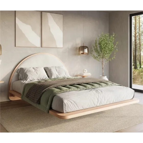 Gamme : LevitoType : Lit design Caractéristiques : Marque ewood / Bois Hêtre massif, finition naturel, tête de lit capitonnée...