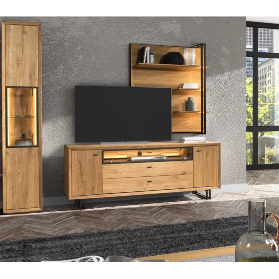 Les meubles TV en chêne répondent à de multiples configurations de salon. Comme vous le savez, le salon est la pièce la plus conviviale de la maison; il convient donc de s'assurer que le salon est non seulement esthétique, mais aussi très pratique. Les meubles TV en bois servent non seulement de support pour votre télévision, de rangement pour l'ensemble de vos appareils multimédia mais sont aussi un élément important de décoration intérieur. L'offre de notre site comprend de nombreux meubles télé en chêne, parmi lesquels se trouvent des modèles alliant chêne et métal. C'est grâce à cela qu'ils s'intègrent parfaitement dans les salons modernes, lofts et ceux offrant un style industriel. Vous trouverez aisément dans notre collection celui qui répondra pleinement à vos attentes. Nos meubles télévision en chêne se caractérisent par une haute qualité de fabrication et chaque détail compte, même le plus infime. Nos meubles TV en chêne présentent une grande qualité, votre achat perdurera dans le temps et l' apparence de votre mobilier restera intact comme au premier jour d'acquisition.